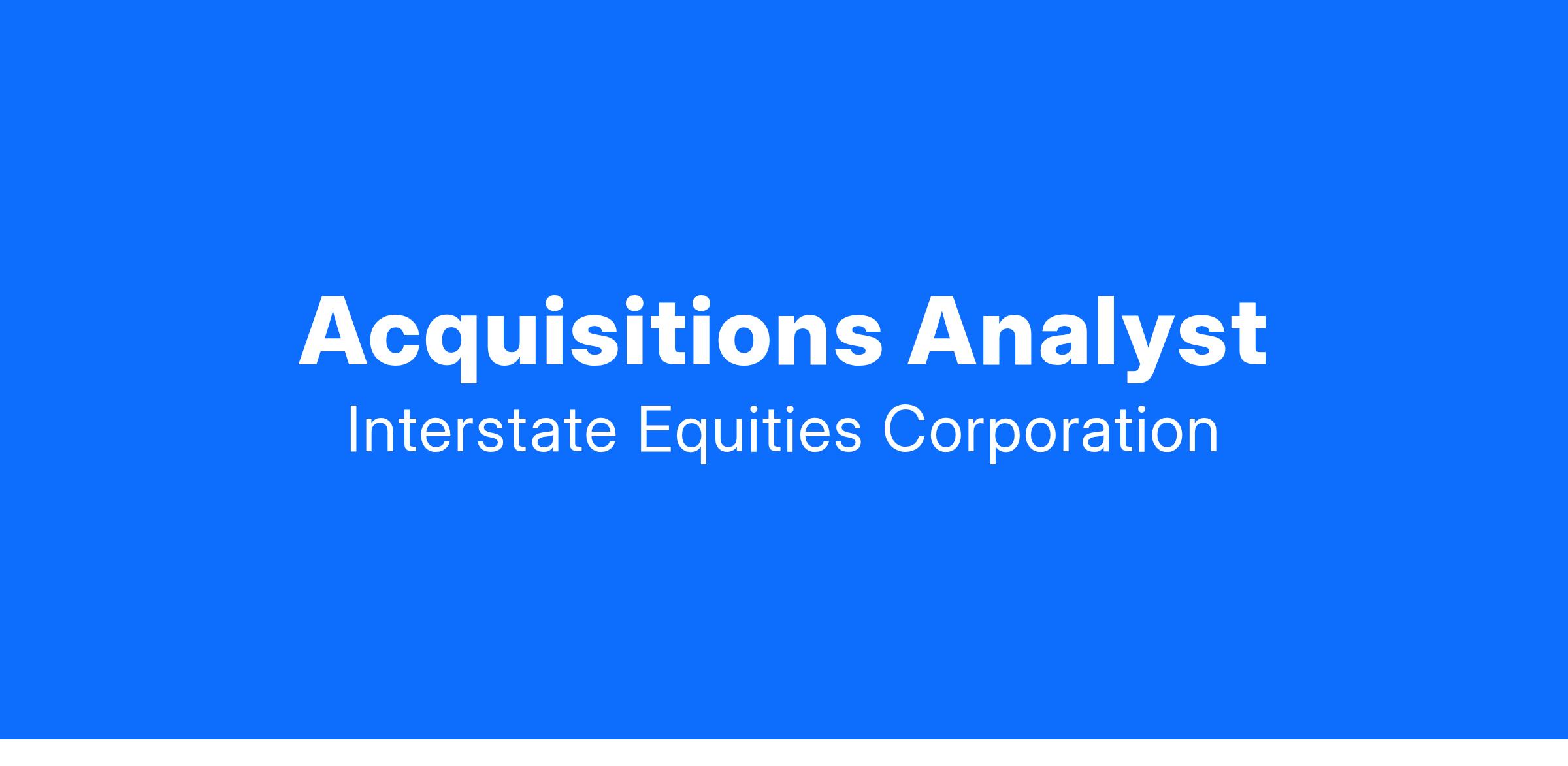 Description: Interstate Equities Corporation is seeking to expand its Analyst team. As an integral member of our team, Analysts should expect a generalist approach. The primary responsibilities include supporting the firms’ acquisitions, dispositions, capital formation and investor relations efforts. Working closely with senior executives and other team members, Analysts are encouraged to assume increasing responsibility. The role will be based in our San Francisco office.