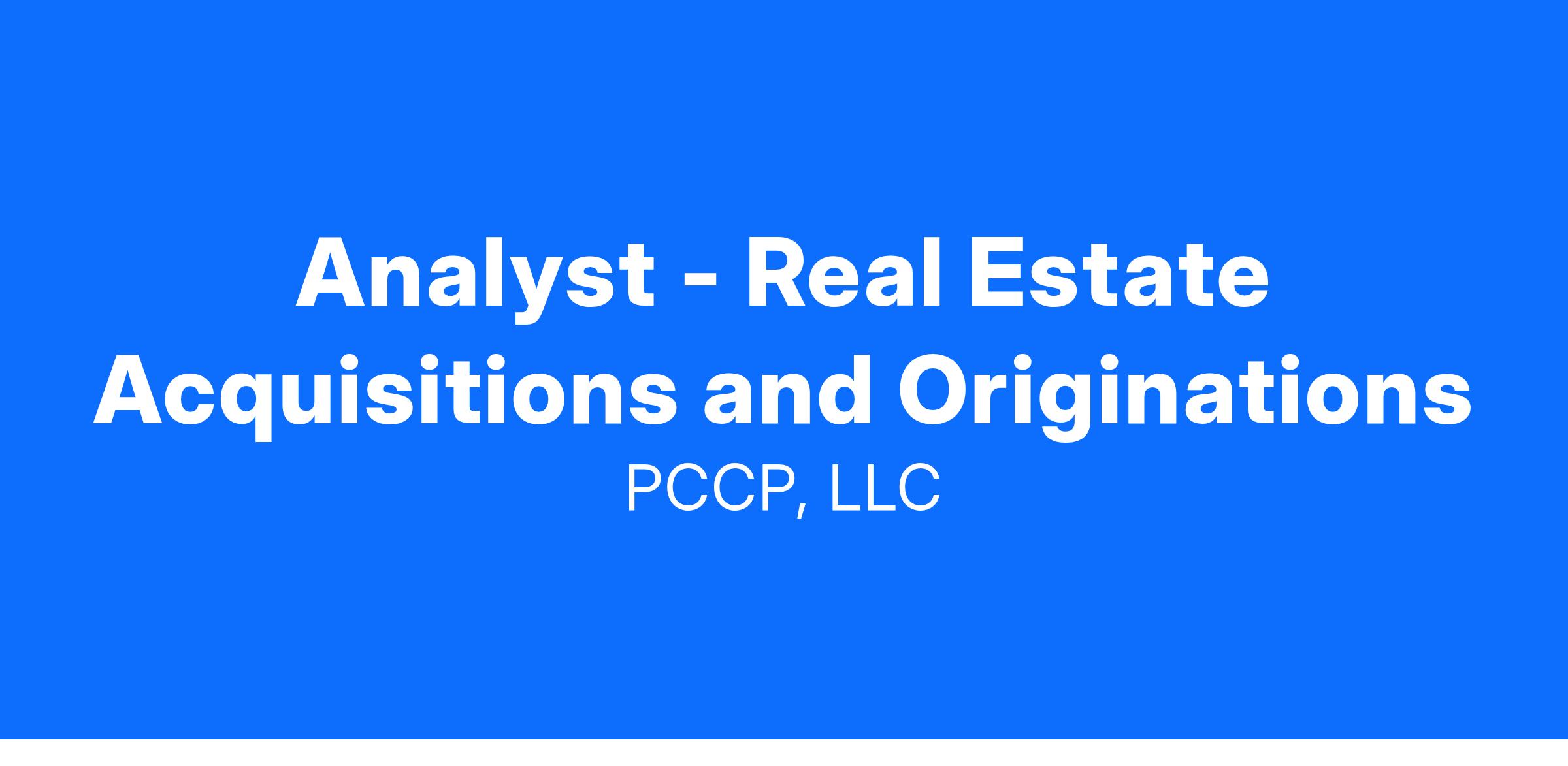 PCCP, LLC is looking for an Analyst position within our San Francisco deal team to assist with both acquisitions and debt originations.