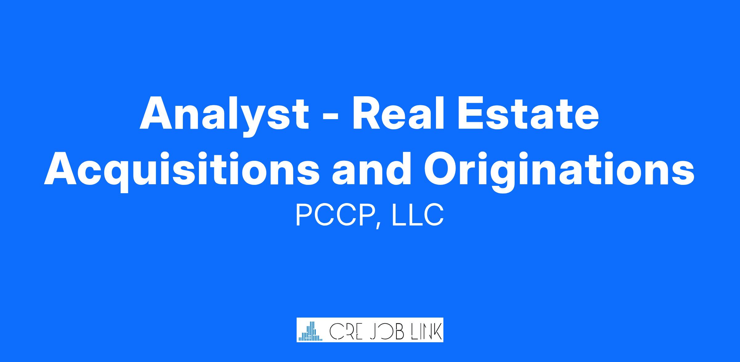PCCP, LLC is looking for an Analyst position within our San Francisco deal team to assist with both acquisitions and debt originations.