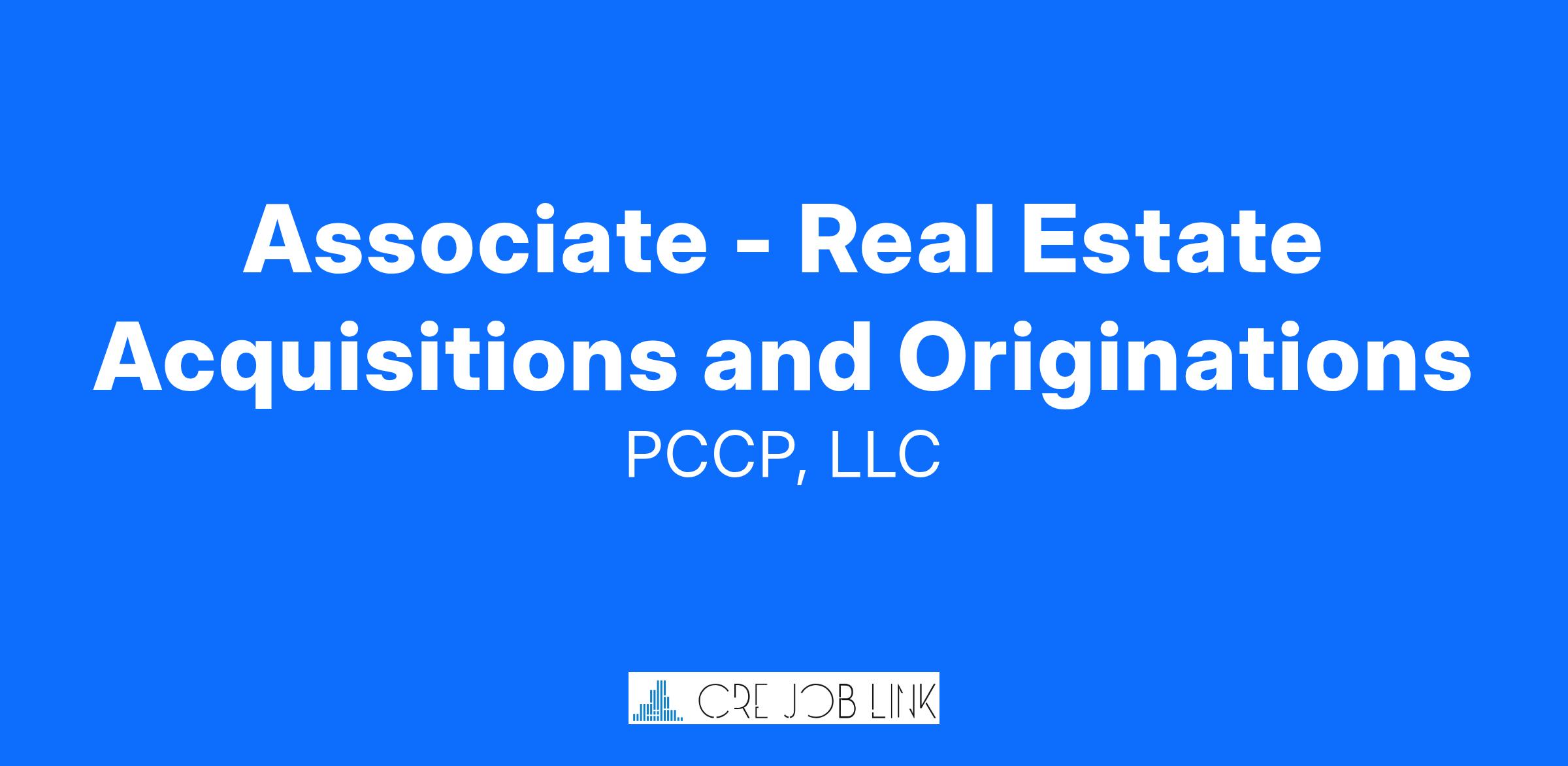 PCCP, LLC is looking for an Associate position within San Francisco our deal team to assist with both acquisitions and debt originations.