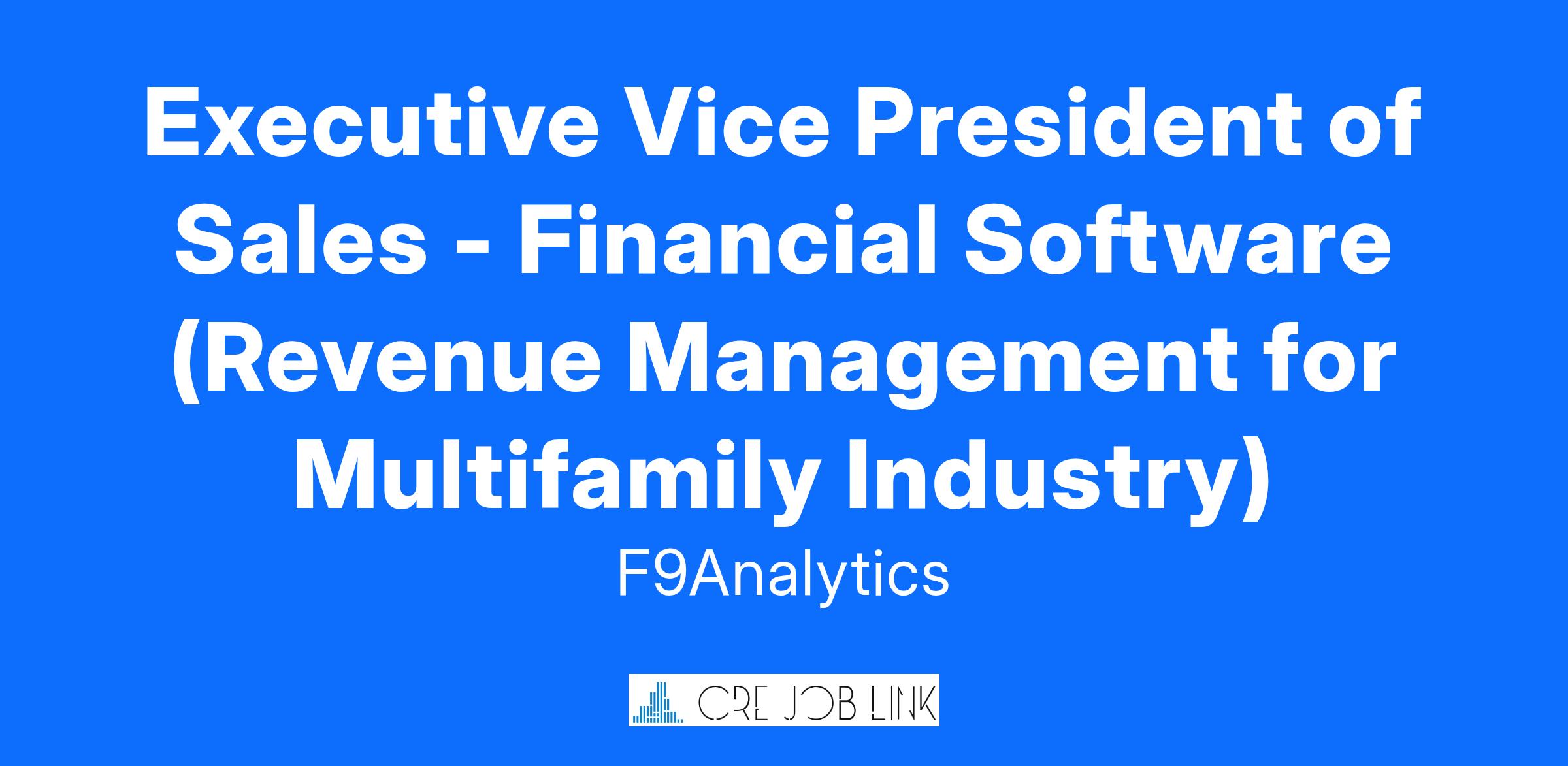 We are seeking a dynamic Executive Vice President of Sales to lead our team and drive revenue growth for our financial software solutions, with a specific focus on revenue management for the multifamily industry. The ideal candidate will have a proven history in sales leadership, a deep understanding of the multifamily sector, and expertise in financial software. We are particularly interested in high integrity individuals currently working at RealPage or Yardi who are looking to work with advanced technologies untainted by lawsuits involving price-fixing or collusion.