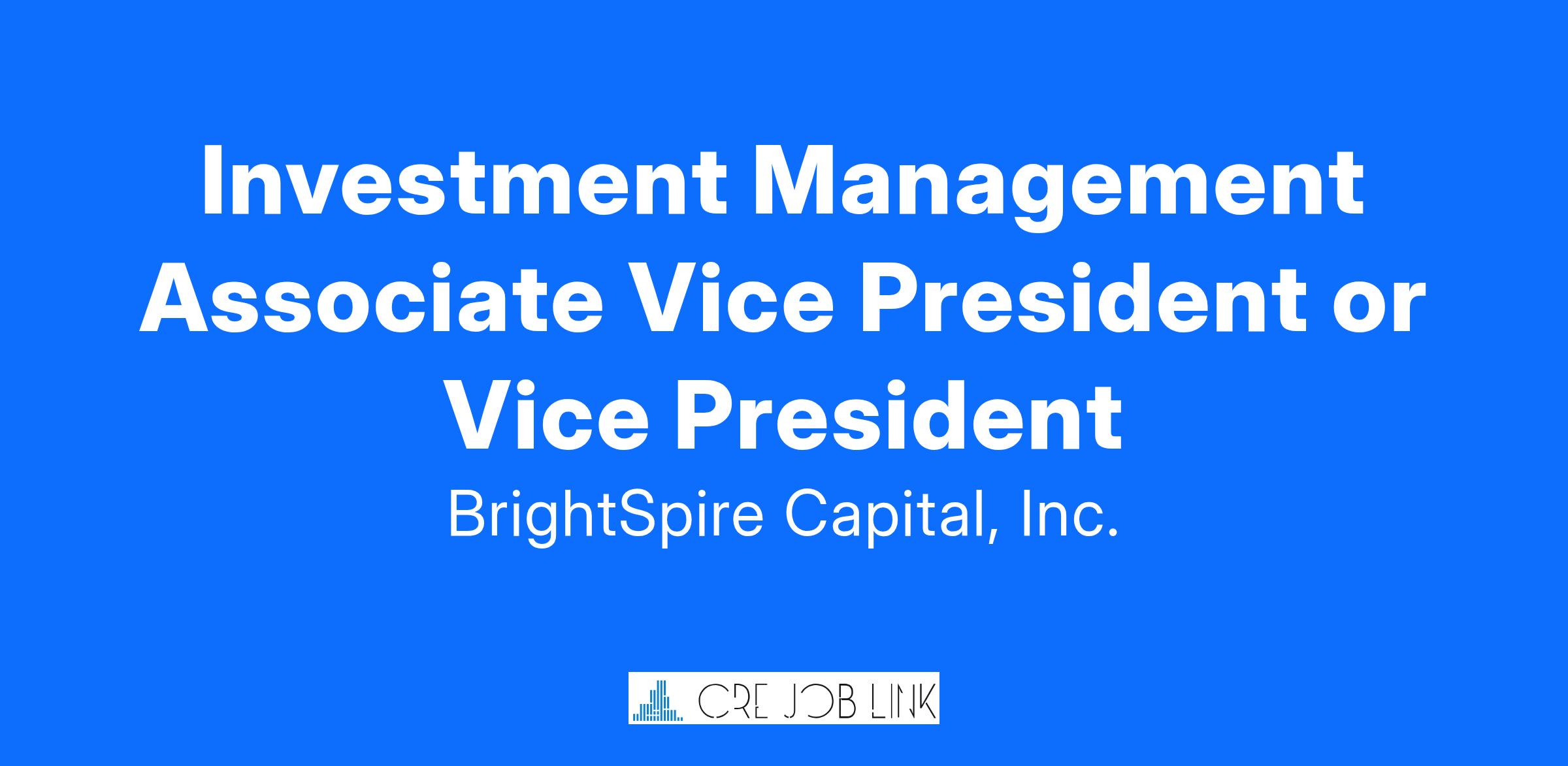BrightSpire Capital is seeking an Associate Vice President or Vice President to join the investment management team. The Associate Vice President / Vice President will primarily focus on underwriting and evaluating new real estate debt opportunities, aiding in term sheet and loan document negotiations, and directing the transaction management process. The Associate Vice President / Vice President will also provide ongoing support to our portfolio and asset management teams. The candidate should demonstrate an excellent work ethic, be a strong communicator, effectively multitask, and work effectively within the existing BRSP team. The Associate Vice President / Vice President will join an active and fast-paced team and will receive exceptional exposure to a multitude of transaction types across real estate sectors nationally.