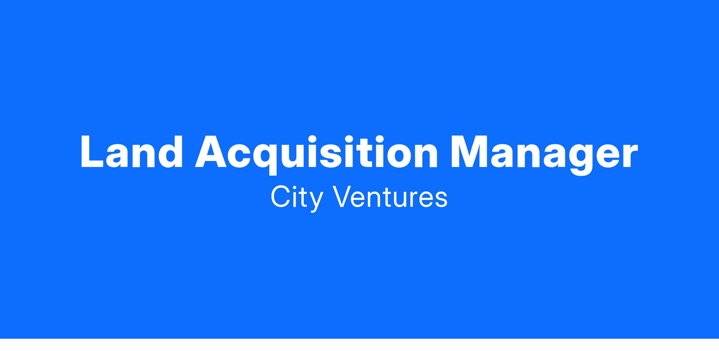 Position Summary: City Ventures is looking for a highly motivated Land Acquisition Manager. If you are a self-starter and want to procure new land acquisition opportunities for ground-up development of residential projects throughout the Greater San Francisco Bay Area, then this is a great opportunity for you. The ideal applicant has 3+ years of acquisitions experience, has great interpersonal skills, and is fiercely tenacious. Working closely with landowners, city officials, and the brokerage community, you will manage all aspects of site acquisitions -- including sourcing and identifying development opportunities, analyzing/underwriting the project, structuring the deal, negotiating the contract, and consummating the transaction.