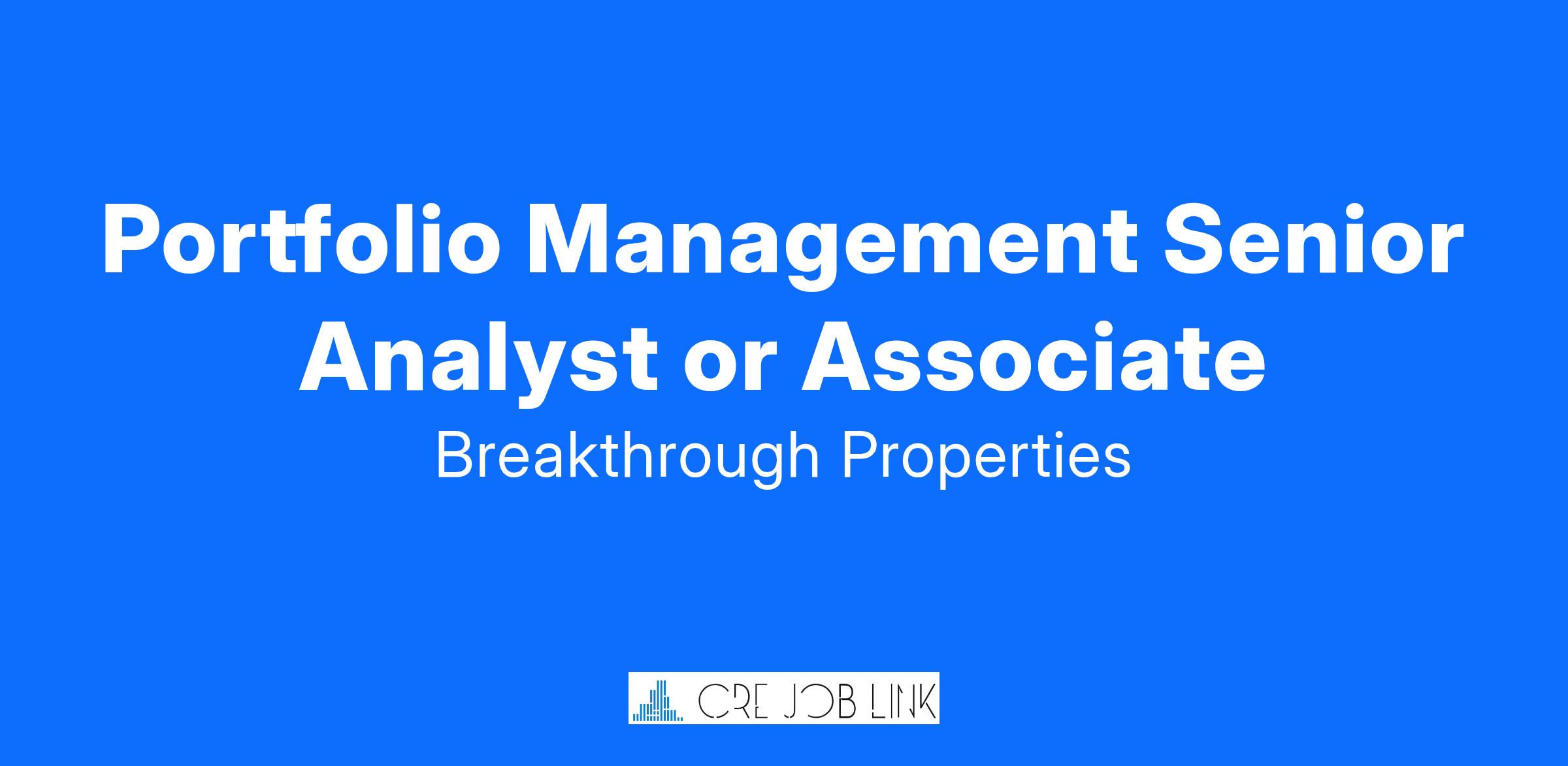 Breakthrough Properties is looking for an experienced real estate professional to join our Los Angeles office as a Portfolio Management Sr. Analyst/Associate. As a member of the Portfolio Management team, the candidate will contribute to reporting and management efforts for Breakthrough’s growing portfolio while working closely with the following teams: Investor Relations, Fund Operations, Asset Management, and Acquisitions. The Senior Analyst/Associate will principally focus on modeling Fund performance, collaborating on investor reports and quarterly valuations, and contributing to fundraising efforts. This is an excellent opportunity to develop your skills and knowledge in real estate investments while working with a talented and dedicated team.