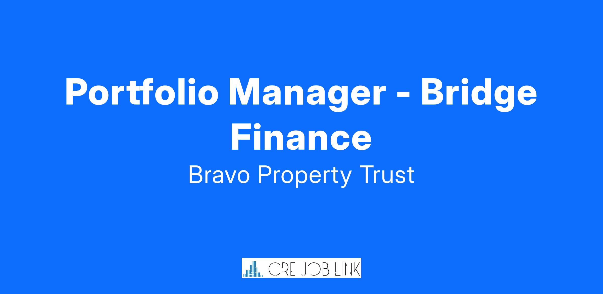 The Portfolio Manager will play a crucial role in managing and optimizing Bravo Property Trust's portfolio of bridge loans. This position requires a deep understanding of real estate finance, particularly in the multifamily and healthcare sectors, and the ability to navigate the complexities of bridge-to-HUD financing.