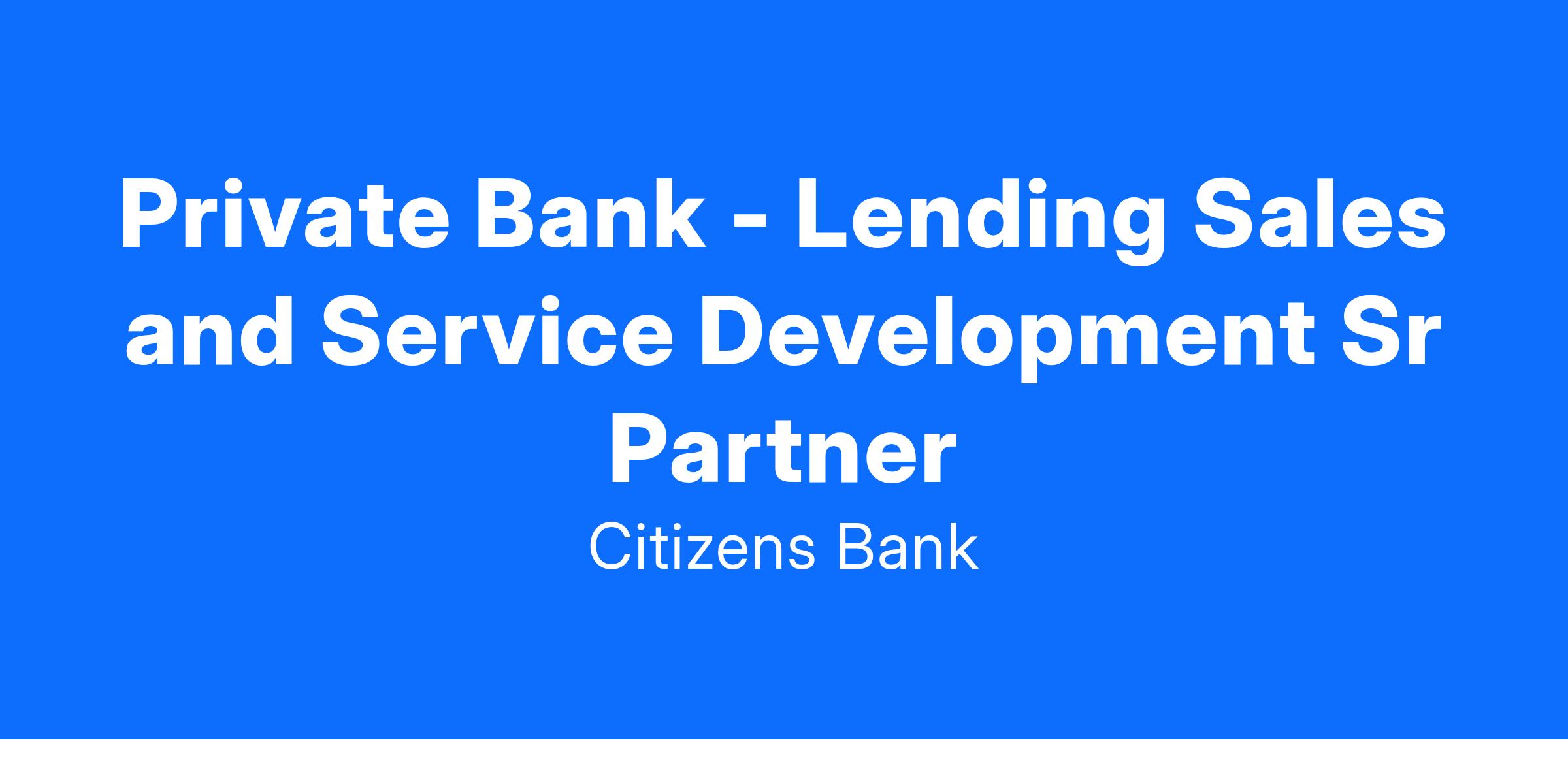 As the Lending Sales & Service Development Sr Partner with the Private Bank, you will be responsible for supporting the successful execution of business line strategies related to lending, credit policies and procedures, and overall loan execution. This is done by collaborating with business line partners and stakeholders as relied upon advocates and consultants by providing a unique, holistic view of both the customer and colleague experience. You will provide strategic input, project management, education and implementation of business line initiatives.