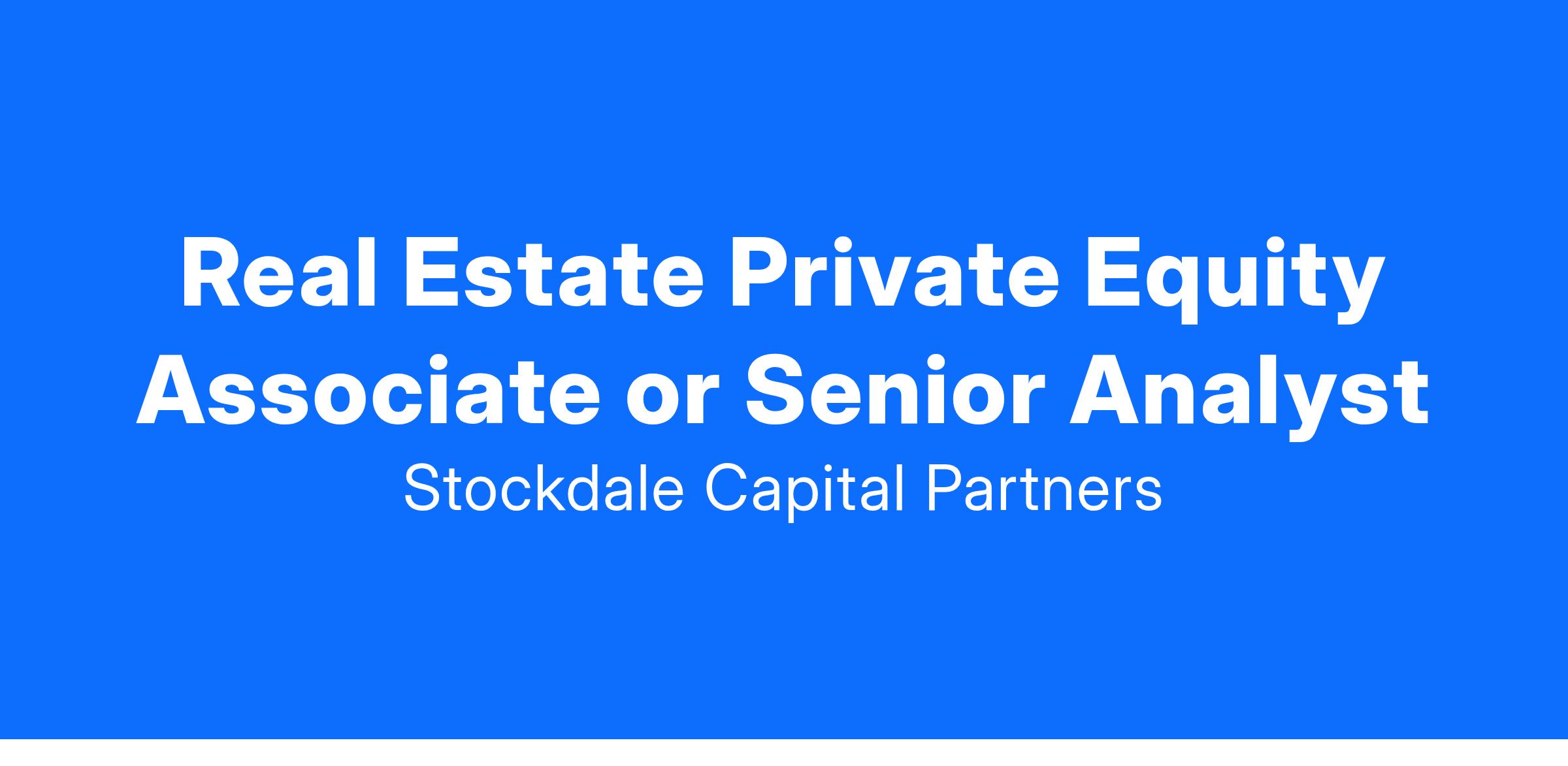 Real Estate Private Equity Associate or Senior Analyst