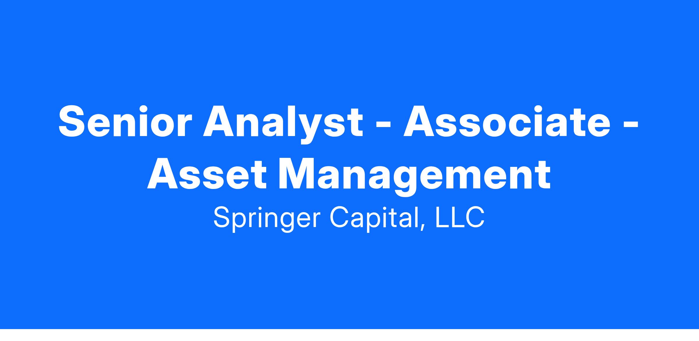 Springer Capital, LLC (“Springer”) is seeking a Senior Analyst / Associate to join its Asset Management team. Springer is a pro-active real estate private equity firm focused on the opportunistic acquisition of multifamily properties across the Southeast. This position will work closely with the Asset Management and Investment teams to maintain and grow the portfolio, currently consisting of 7,000+ units.