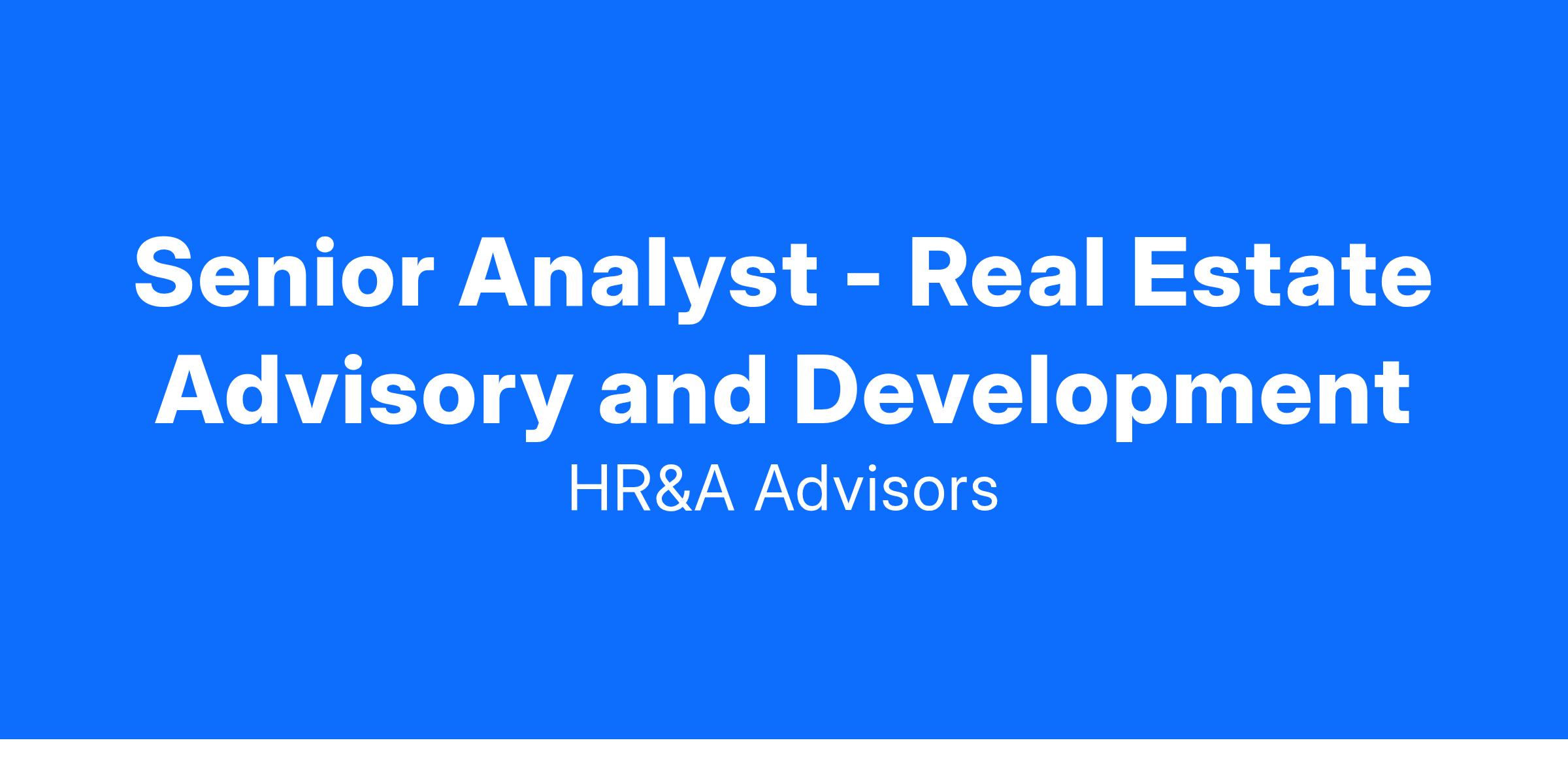 Senior Analyst - Real Estate Advisory and Development